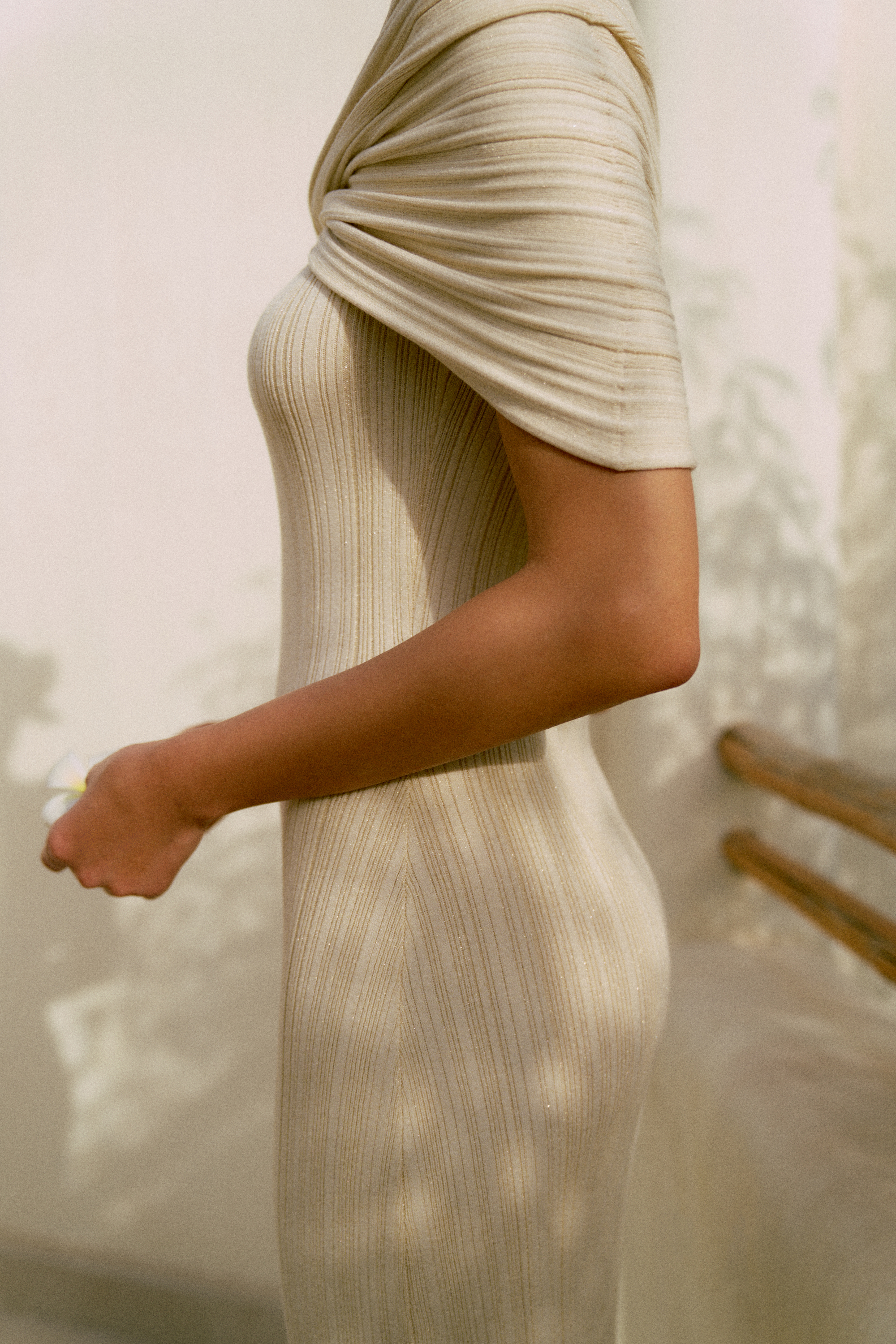 Платье облегающего силуэта, который подчеркивает фигуру, и украшено крупной драпировкой на плечах, создающей эффектный и утонченный образ. Пряжа с деликатным блеском люрекса, добавляет платью изящества. Платье SHERINE идеально подходит для вечерних мероприятий или торжественных случаев, подчеркивая женственность и утонченность.